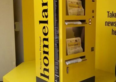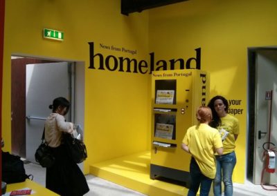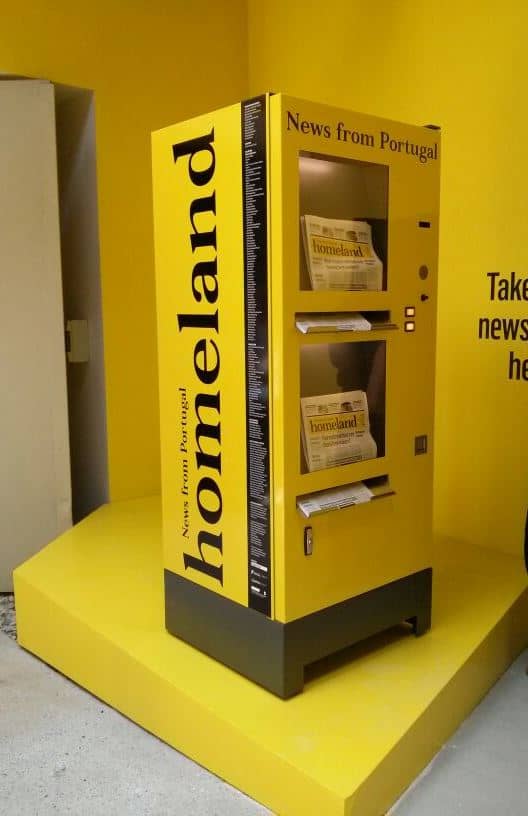 Alfombra roja para expendedoras Adimac, que llegaron a la Bienal de Arquitectura de Venecia. «Trienal de Arquitectura de Lisboa» eligió nuestras expendedoras de periódicos News Vendor, totalmente personalizadas, para vender el periódico Homeland, News from Portugal, a los visitantes del pabellón portugués situado al Arsenal.